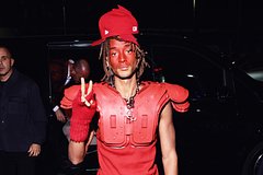27-летний сын актера Уилла Смита появился на шоу в монохромном красном наряде. Его костюм состоял из облегающего топа, широких брюк с заниженной талией, ботинок и наплечников в стиле защитной экипировки игроков в американский футбол.
